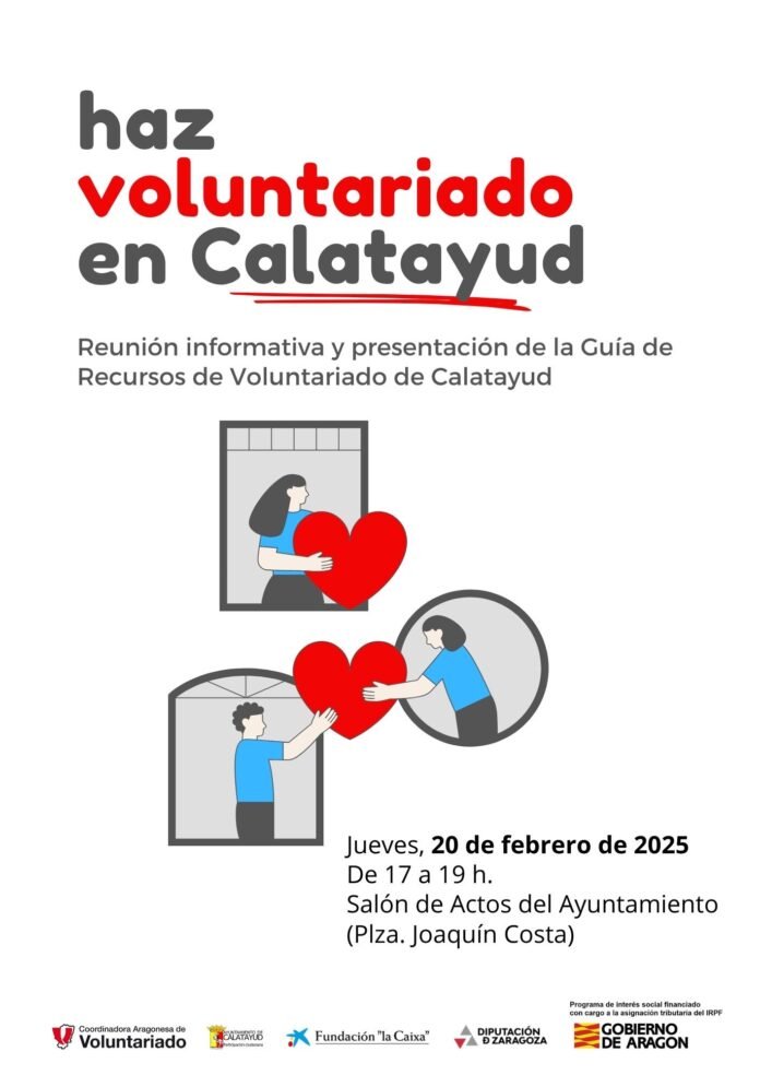 Calatayud acogerá el próximo 20 de febrero una reunión informativa y una presentación de la guía de recursos de voluntariado en la ciudad
