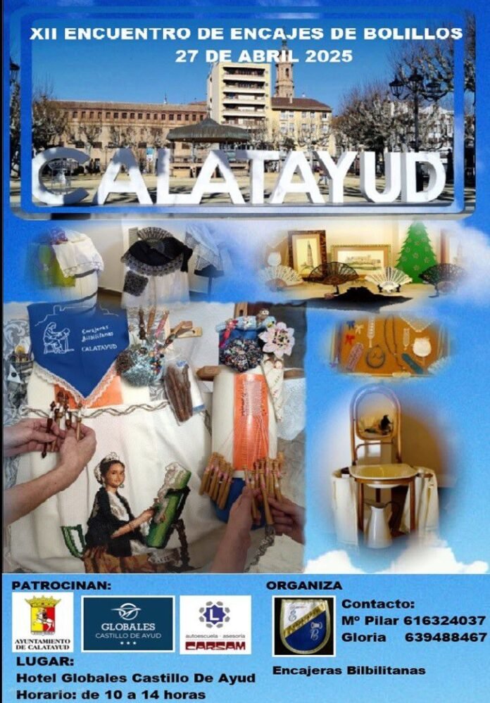 Un año más, la Asociación de Encajeras Bilbilitanas ultima los preparativos para que Calatayud acoja el duodécimo encuentro de Encajes de Bolillos. Un encuentro nacional que espera reunir a alrededor de trescientas encajeras en la ciudad del Jalón. Será este próximo domingo 27 de abril en el Hotel Globales Castillo de Ayud.