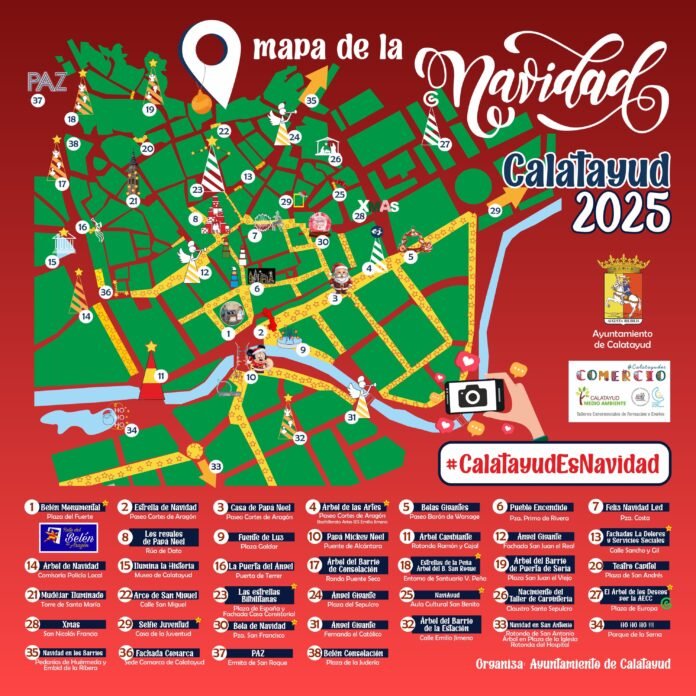 Además de la iluminación, 38 de los 76 espacios contarán con elementos adicionales como ‘photocalls’ y escenarios pensados para fotografías navideñas. El Ayuntamiento anima a vecinos y visitantes a compartir sus instantáneas en redes sociales utilizando la etiqueta #CalatayudEsNavidadpara promocionar la ciudad. Las luces permanecerán encendidas hasta el 7 de enero.
