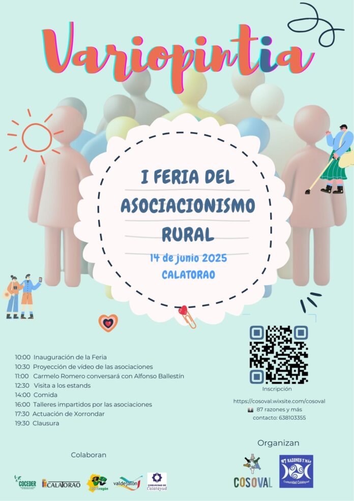 El próximo día 14 de junio de 2025 se celebrará en el municipio de Calatorao la promera Feria del Asociacionismo Rural, con el objetivo de mostrar a la sociedad el importante patrimonio humano, social y cultural que existe en nuestros pueblos.