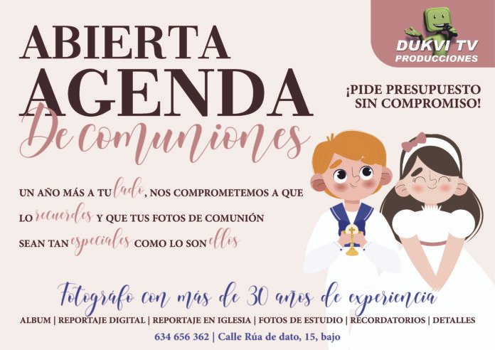 Desde este mes de octubre, Dukvi TV tiene abierta la agenda para contratar reportajes fotográficos para las comuniones del próximo año 2025 en Calatayud y su comarca. Todo ello de la mano de nuestro compañero Javier Mojica, fotógrafo con más de treinta años de experiencia en el sector de la fotografía de comunión, bautizo y boda, entre otros.