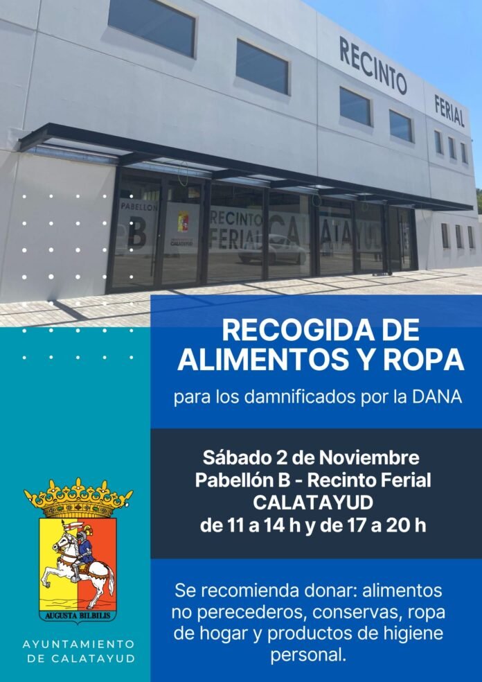 El Ayuntamiento de Calatayud habilita el Recinto Ferial para hacer una recogida de productos necesarios para la Comunidad Valenciana: será mañana 2 de noviembre