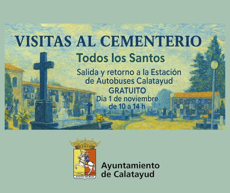 El Ayuntamiento de Calatayud ha anunciado que pone a disposición de los ciudadanos un servicio de autobús gratuito al Cementerio Municipal de la Soledad, para facilitar las visitas con motivo de la festividad de Todos los Santos.