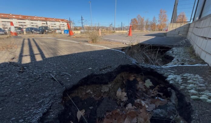En el caso del estacionamiento de vehículos lleva dos años cerrado y precintado en una zona extensa y próxima al andén 6, como consecuencia de un hundimiento en el suelo, que es apreciable tanto en el interior del parking como en la zona exterior y anden del camino paralelo. “Son al año 190.000 los viajeros que utilizan la estación bilbilitana y ese aspecto produce una sensación de desidia y dejadez además de que los daños que no se solucionan, crecen”, dice el portavoz Gimeno.