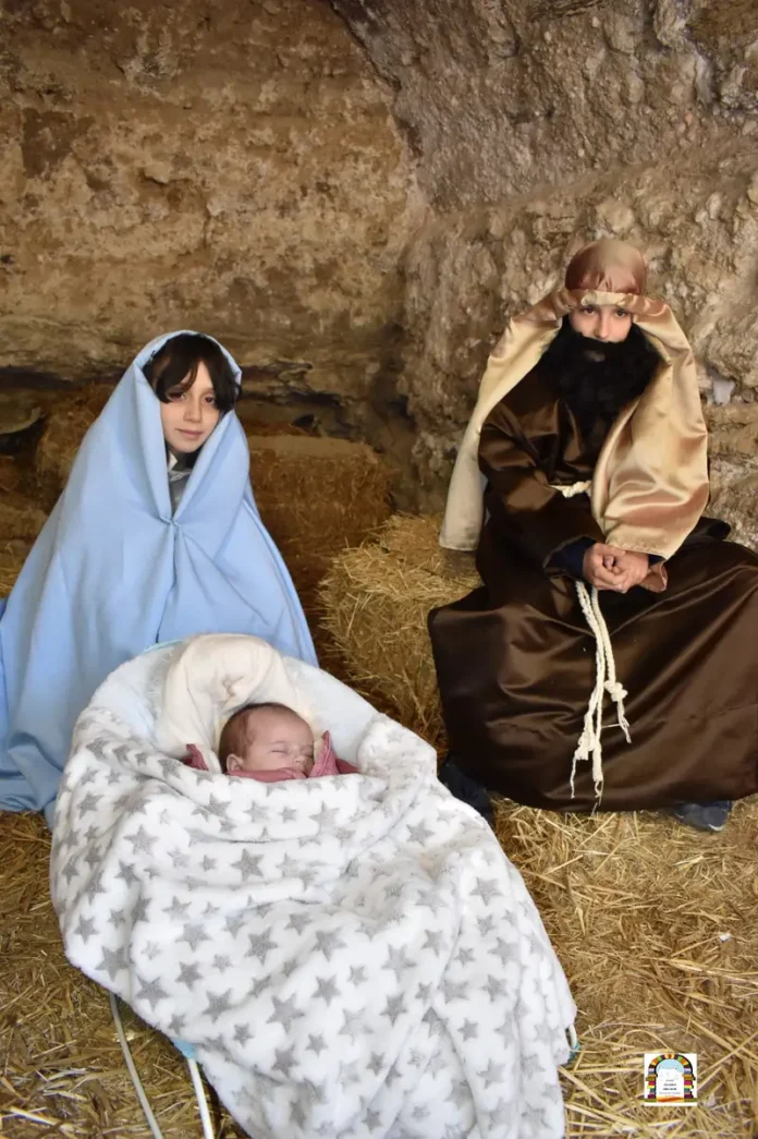 La representación, en la que participan alrededor de 150 niños y niñas de la escuela, recrea diversas escenas bíblicas a lo largo de distintos lugares del barrio y del colegio. Los pequeños actores dan vida a momentos emblemáticos como el edicto romano para el empadronamiento que transcurre por varias calles, seguido de la propia escena del censo en la Plaza de San Juan el Viejo. El recorrido incluye, además, las distintas posadas en varias casas y la escena de las lavanderas en el auténtico lavadero.