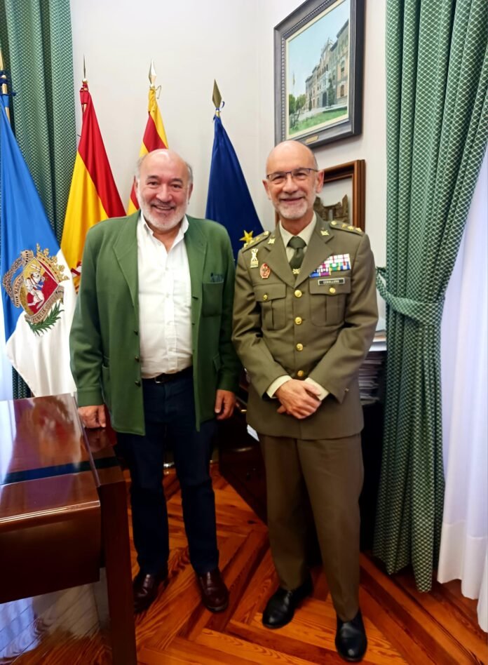 En un encuentro con el alcalde bilbilitano, José Manuel Aranda, Cebollero trasladaba el agradecimiento por la colaboración mantenida con esta ciudad, en la que los ejércitos del Tierra y del Aire tienen una importante presencia con la Academia de Logística y el Escuadrón de Vigilancia Aérea.