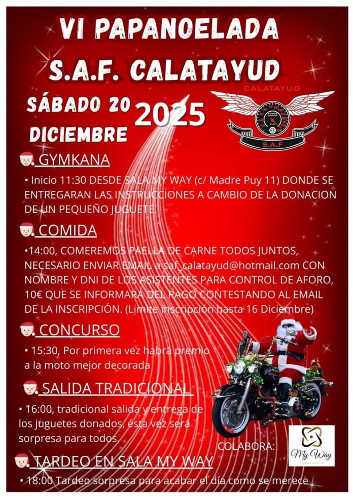 La tarde estará marcada por la tradicional salida en moto para llenar de alegría y ruido las calles de Calatayud. Este año, la ruta incluirá la entrega de los juguetes recogidos, un momento que se mantendrá en secreto hasta el mismo día.