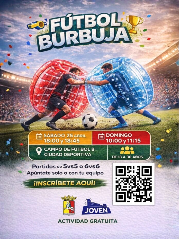 La adrenalina y las risas están aseguradas este fin de semana en la Ciudad Deportiva de Calatayud, que se prepara para recibir una de las actividades más divertidas y dinámicas del calendario deportivo local: el Fútbol Burbuja. El evento se desarrollará en el campo de fútbol 8, donde los participantes podrán disfrutar de partidos en dimensiones reducidas con una particularidad que lo cambia todo: cada jugador irá protegido por una burbuja gigante diseñada para chocar, rebotar y rodar por el césped con total seguridad.