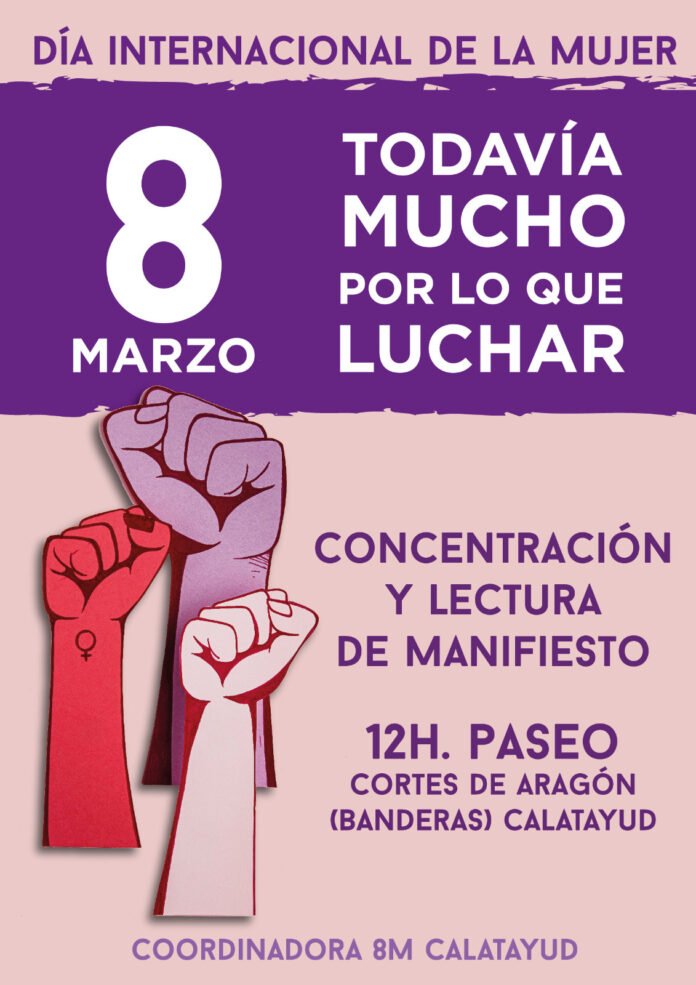 El próximo sábado 8 de marzo se conmemora el Día Internacional de la Mujer, y como cada año, varias asociaciones y sindicatos han convocado una cita en Calatayud. Esta vez, cita organizada por la “Coordinadora 8M Calatayud”.