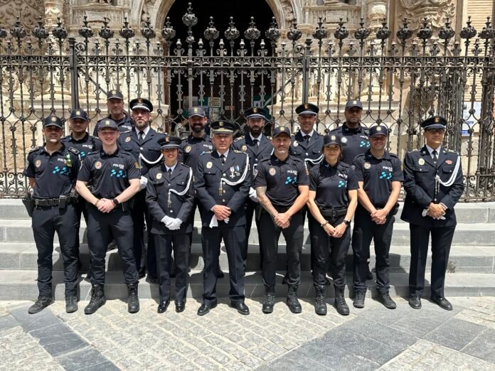 Tras ello y en un acto informal, se reconocía la labor de la Policía Local. El Alcalde felicitaba a los agentes por su dedicación y compromiso con la ciudad, y daba la bienvenida a los cinco nuevos agentes que hace unas semanas se incorporaban a la plantilla.