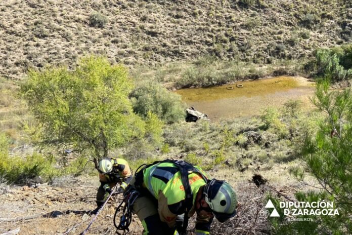 Los bomberos de la Diputación Provincial de Zaragoza han excarcelado esta mañana el cuerpo de una persona fallecida, atrapado en el vehículo que conducía tras precipitarse el turismo por un barranco en el término municipal de Nuévalos, en la Comarca Comunidad de Calatayud, en la carretera A-202.