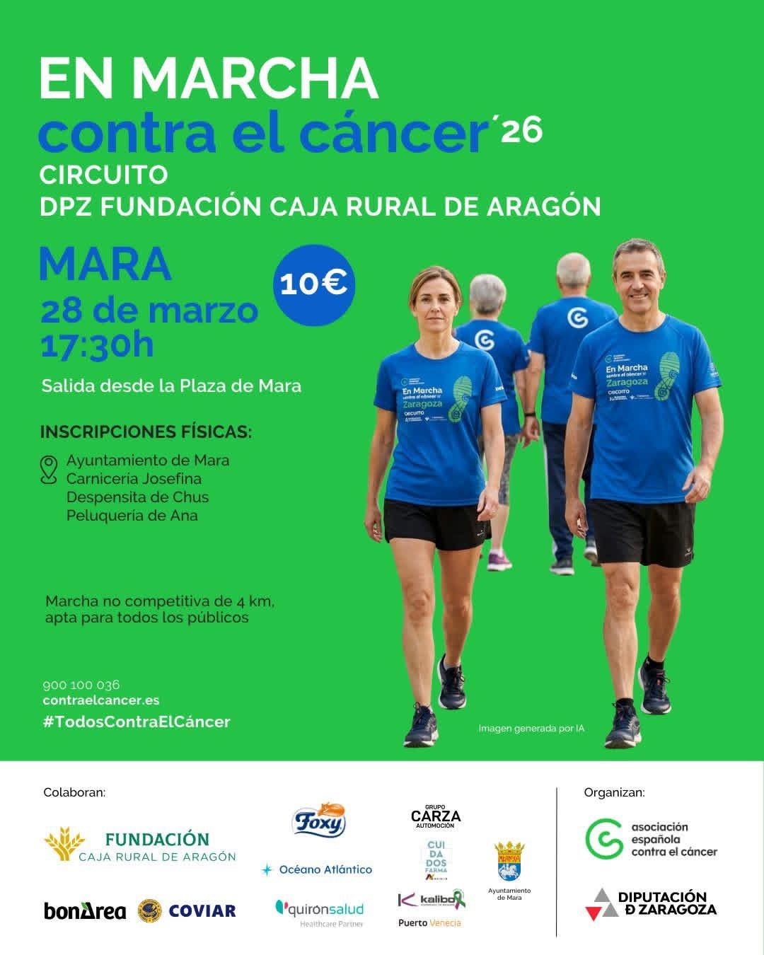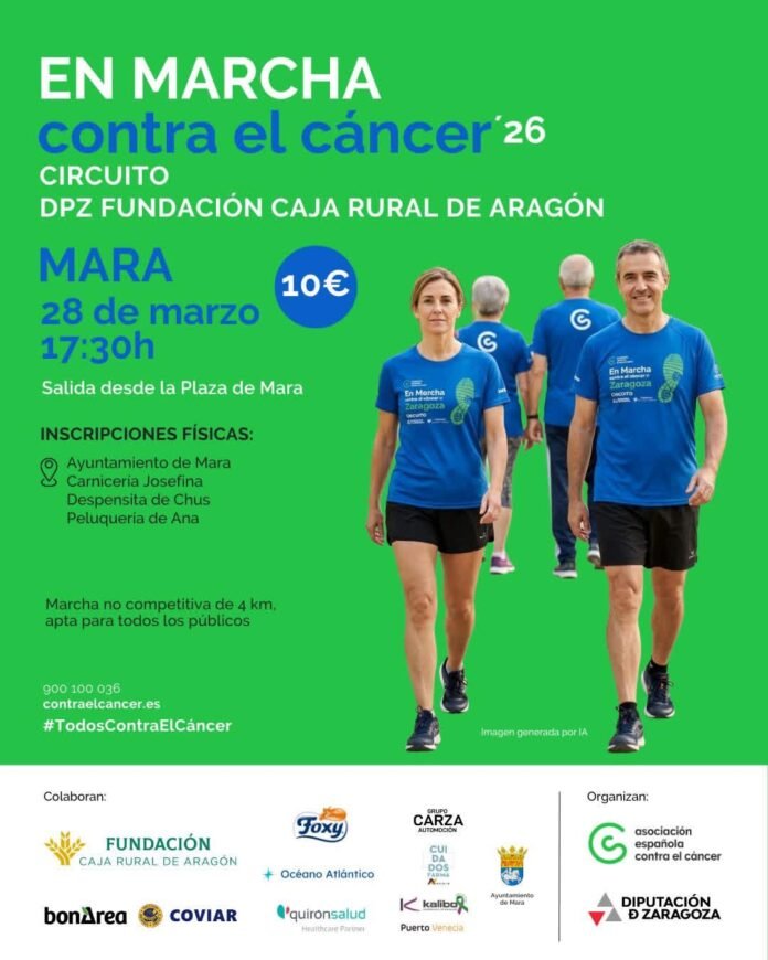 La localidad de Mara se prepara para dar el pistoletazo de salida al circuito provincial de marchas contra el cáncer el próximo 28 de marzo. Bajo el lema «En Marcha contra el cáncer ’26», esta iniciativa busca movilizar a la población en una jornada que combina la actividad física con la solidaridad, formando parte del circuito impulsado por la DPZ y la Fundación Caja Rural de Aragón.