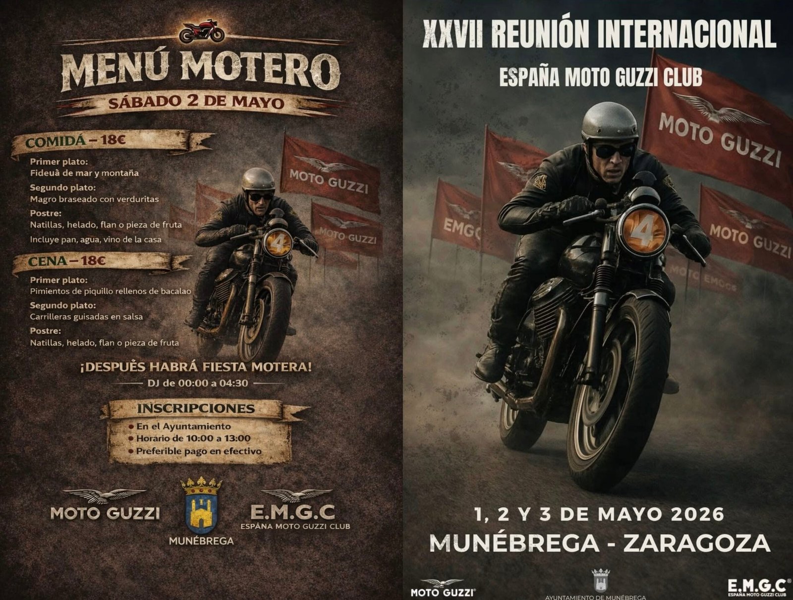 La localidad de Munébrega se convertirá en el epicentro del motociclismo clásico y de carretera los próximos 1, 2 y 3 de mayo de 2026. El Ayuntamiento ha anunciado la celebración de la XXVII Reunión Internacional del España Moto Guzzi Club, un evento que promete atraer a aficionados de diversos puntos de la geografía nacional e internacional para compartir su pasión por la mítica marca del águila.