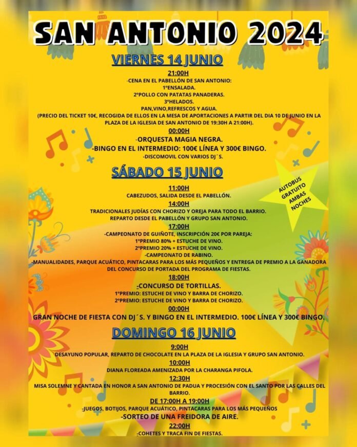 El sábado es el tradicional reparto de judías para todo el barrio y habrá además música con dj`s y concursos varios. El domingo tiene lugar la misa y la procesión, además de charanga y desayuno popular.