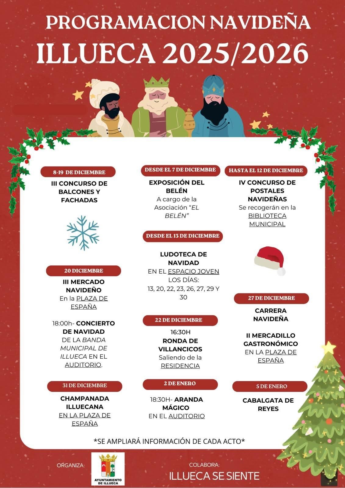 Para despedir el año, el 31 de diciembre se celebrará la festiva Champanada Illuecana en la Plaza de España. El 2 de enero, el Auditorio acogerá el espectáculo Aranda Mágico a las 18:30h, y como broche de oro, la magia culminará con la esperada Cabalgata de Reyes el 5 de enero.