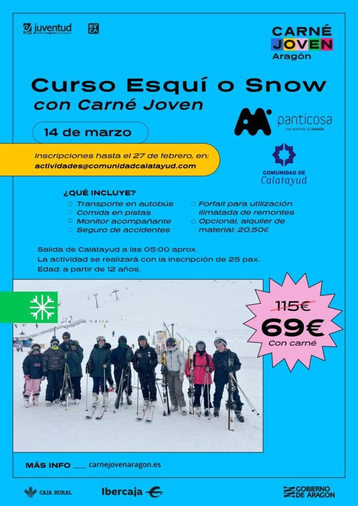 La Comarca Comunidad de Calatayud ha anunciado la organización de un viaje a la Estación Invernal de Panticosa programado para el próximo 14 de marzo. Esta iniciativa, impulsada a través del Carné Joven del Instituto Aragonés de la Juventud, busca fomentar el deporte de invierno entre los jóvenes de la zona, ofreciendo una experiencia completa en la nieve.