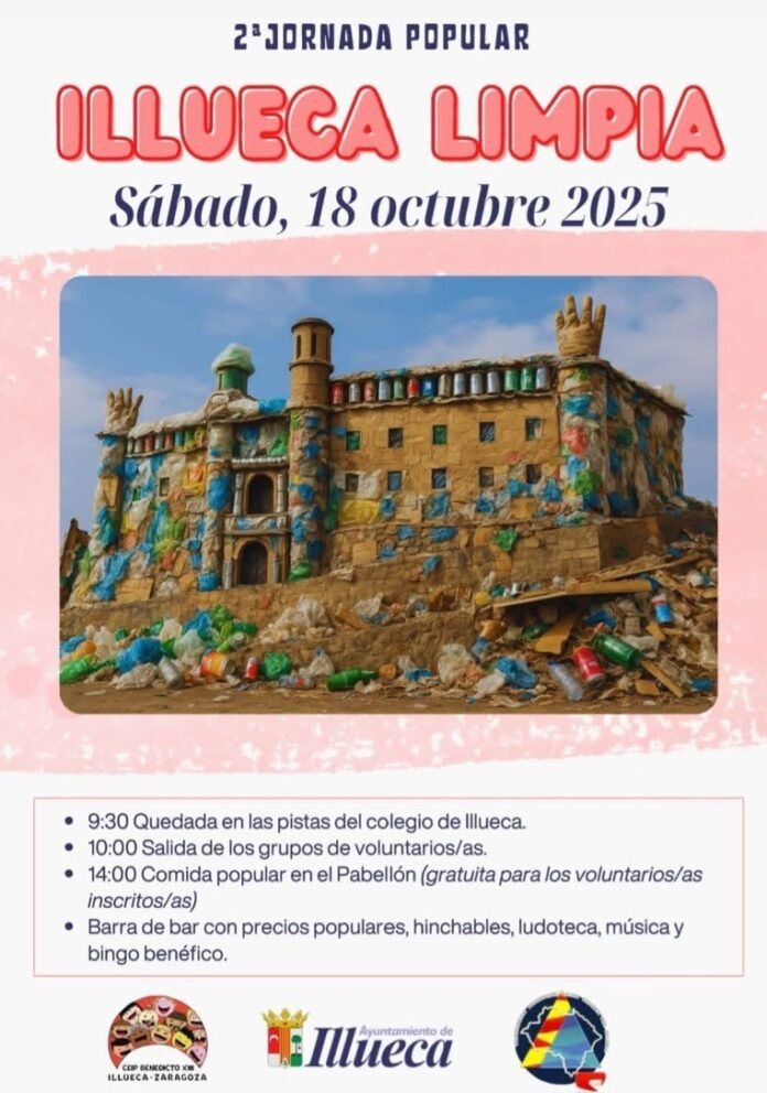 El Ayuntamiento de Illueca y el colegio Benedicto XIII se han unido para organizar la segunda Jornada Popular «Illueca Limpia», un evento de voluntariado que busca mejorar el entorno natural del municipio. La jornada se llevará a cabo el próximo sábado, 18 de octubre de 2025.