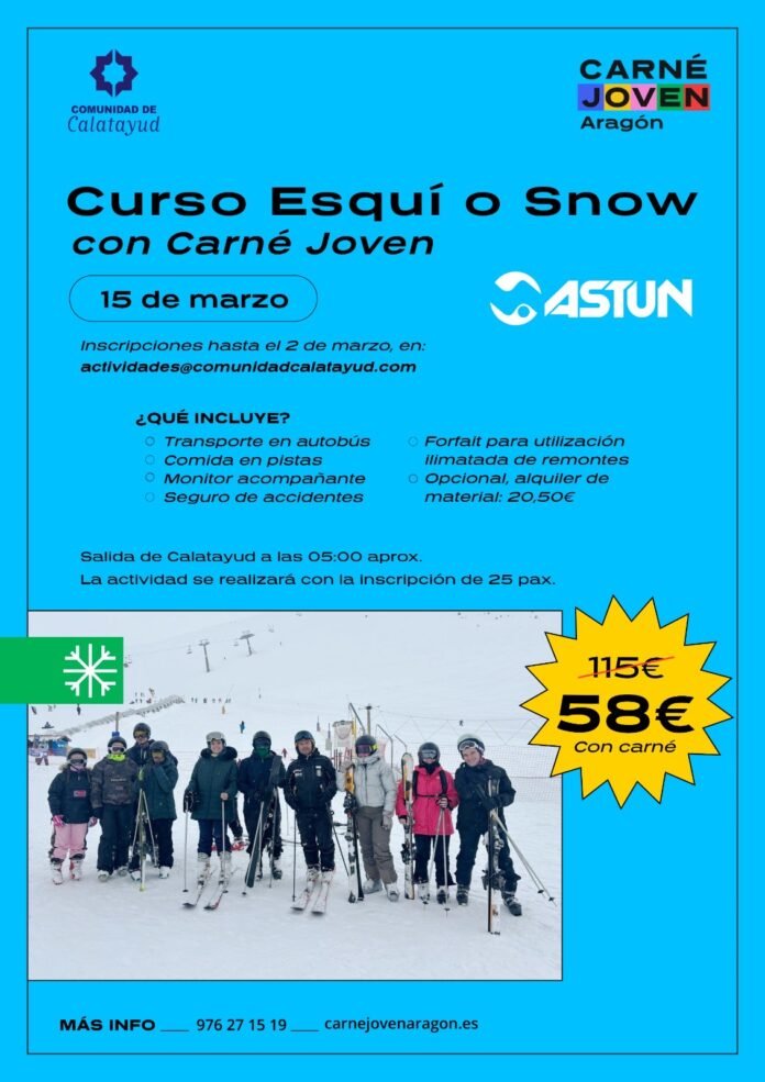 La Comarca Comunidad de Calatayud organiza un viaja a la Estación de Esquí de Astún a través del Carné Joven el próximo 15 de marzo