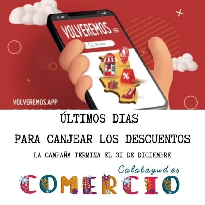 El departamento de Comercio del Ayuntamiento de Calatayud recuerda que el 31 de diciembre de 2024 finaliza la campaña “Volveremos”. Ese es el último día para canjear los saldos y beneficiarse de los descuentos.