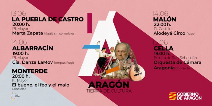 La programación ‘Aragón, tierra de cultura’, que promueven las direcciones generales de Cultura y Turismo del Gobierno de Aragón, ofrecerá este fin de semana espectáculos de magia, danza, música y circo en las localidades de La Puebla de Castro, Albarracín, Monterde, Malón y Cella.