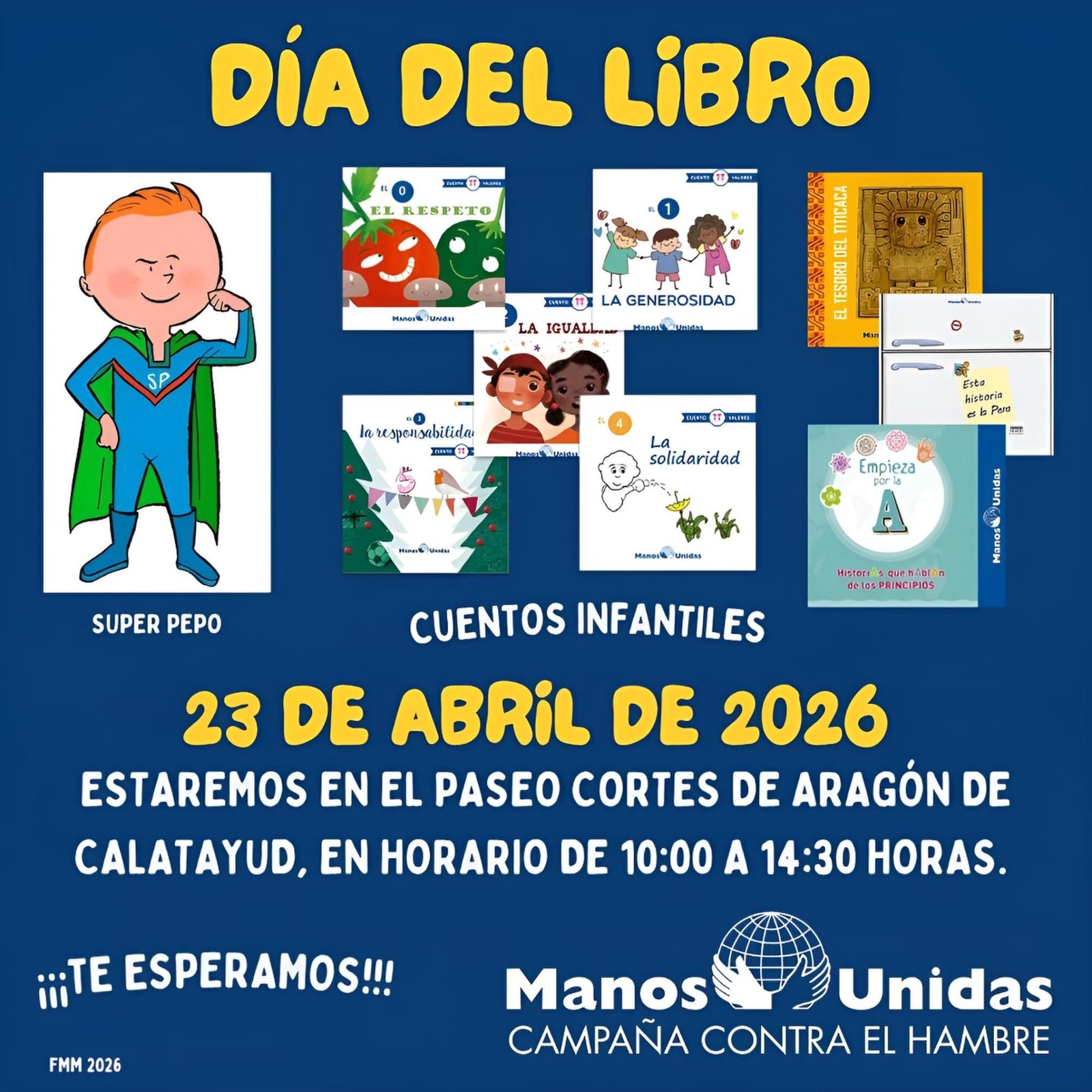 En el marco de la festividad de San Jorge, hoy jueves 23 de abril, el Paseo Cortes de Aragón de Calatayud se convierte en el escenario de una jornada dedicada a la lectura y el compromiso social. Manos Unidas se suma a la celebración del Día del Libro instalando una mesa informativa y de venta de materiales solidarios que permanecerá abierta al público durante toda la mañana, en horario de 10:00 a 14:30 horas.