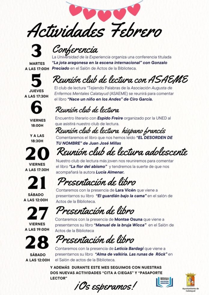 Más allá de los eventos puntuales, la biblioteca mantiene vivas sus iniciativas permanentes. Los usuarios todavía pueden participar en la «Cita a ciegas» con libros seleccionados o completar su «Pasaporte Lector», sin olvidar el rincón temático dedicado este mes a la novela romántica y al carnaval. Con esta oferta, Calatayud reafirma su apuesta por una cultura viva, cercana y participativa.