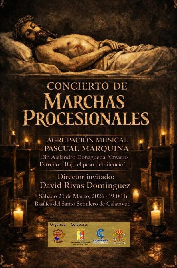 La Agrupación Musical Pascual Marquina de Calatayud se prepara para una de las citas más profundas y esperadas de su calendario anual: el Concierto de Marchas Procesionales. Este evento, que trasciende lo puramente musical para convertirse en una experiencia sensorial y espiritual, tendrá lugar el próximo sábado 21 de marzo a las 19h en un marco incomparable de fe y patrimonio: la Basílica del Santo Sepulcro de Calatayud.