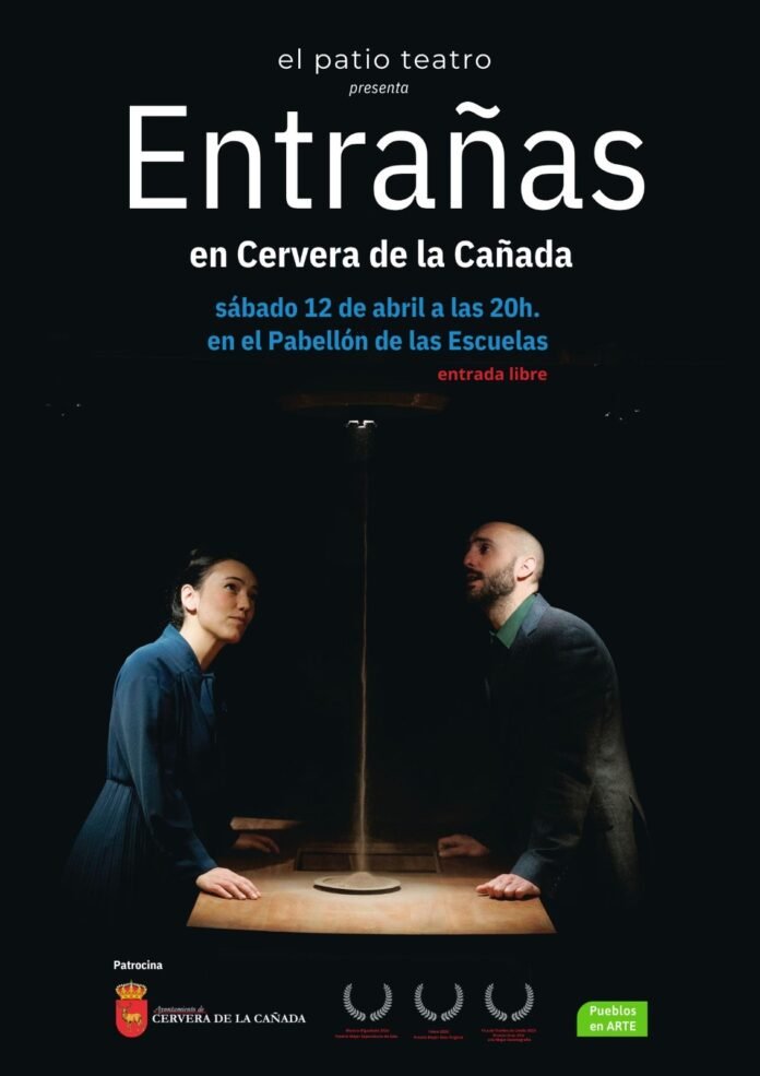 La compañía riojana El Patio Teatro visitará este próximo sábado la localidad de Cervera de la Cañada, en la Comarca Comunidad de Calatayud. Allí presentarán su nuevo espectáculo “Entrañas”, un precioso viaje hecho a cuatro manos y a dos voces por el interior del cuerpo humano. Una delicada mezcla de objetos, iluminación y lenguaje visual, mezclados con gracia, sencillez y una extraordinaria elegancia, fruto del respeto y la altura poética con la que han abordado el tema.