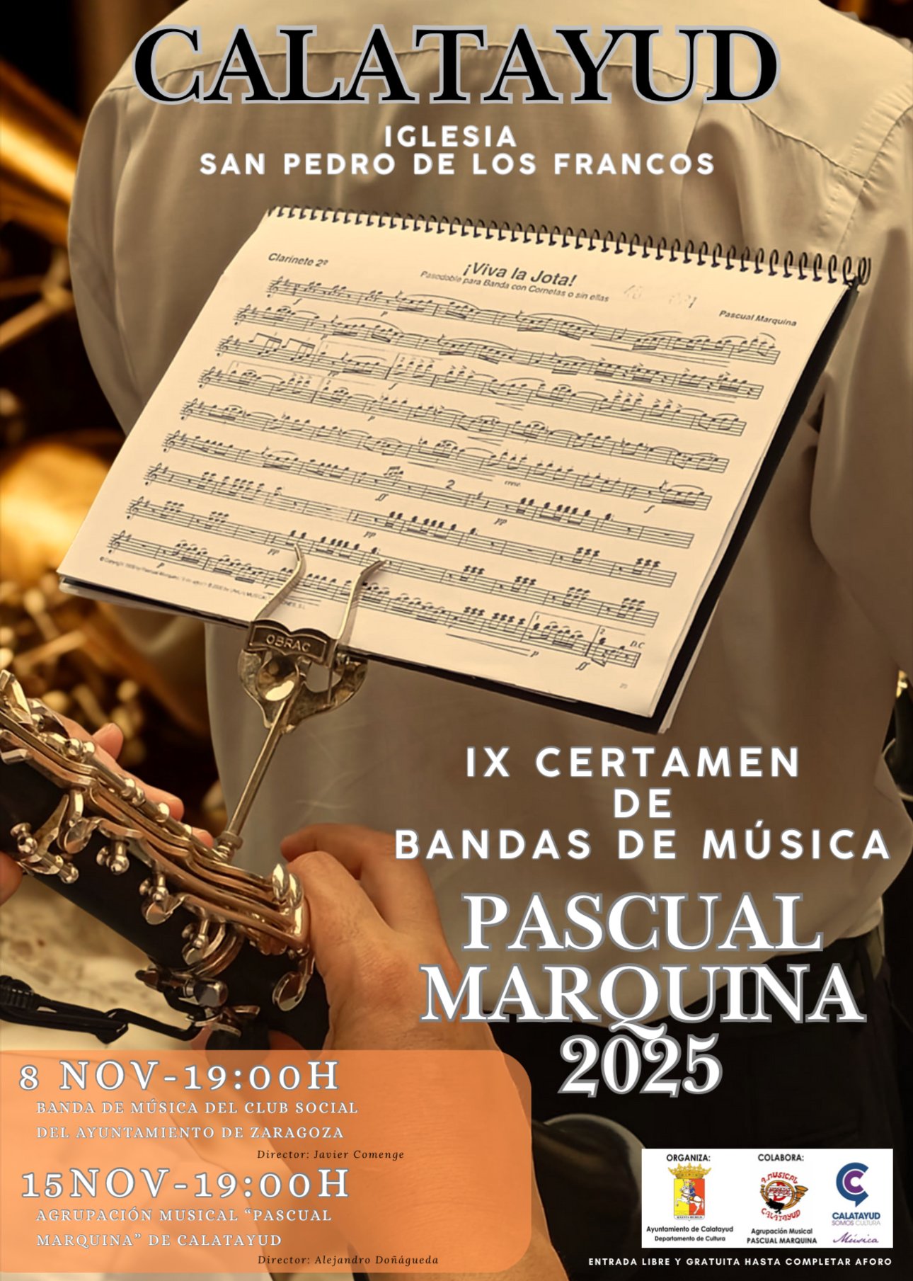 Calatayud es ciudad con larga tradición musical y cuenta con una banda desde hace 35 años que lleva el nombre del reconocido compositor bilbilitano Pascual Marquina Narro. Este grupo con 65 músicos de todas las edades es el eje que vertebra un certamen de bandas que alcanza su novena edición y por el que han pasado agrupaciones de distintas ciudades españolas.
