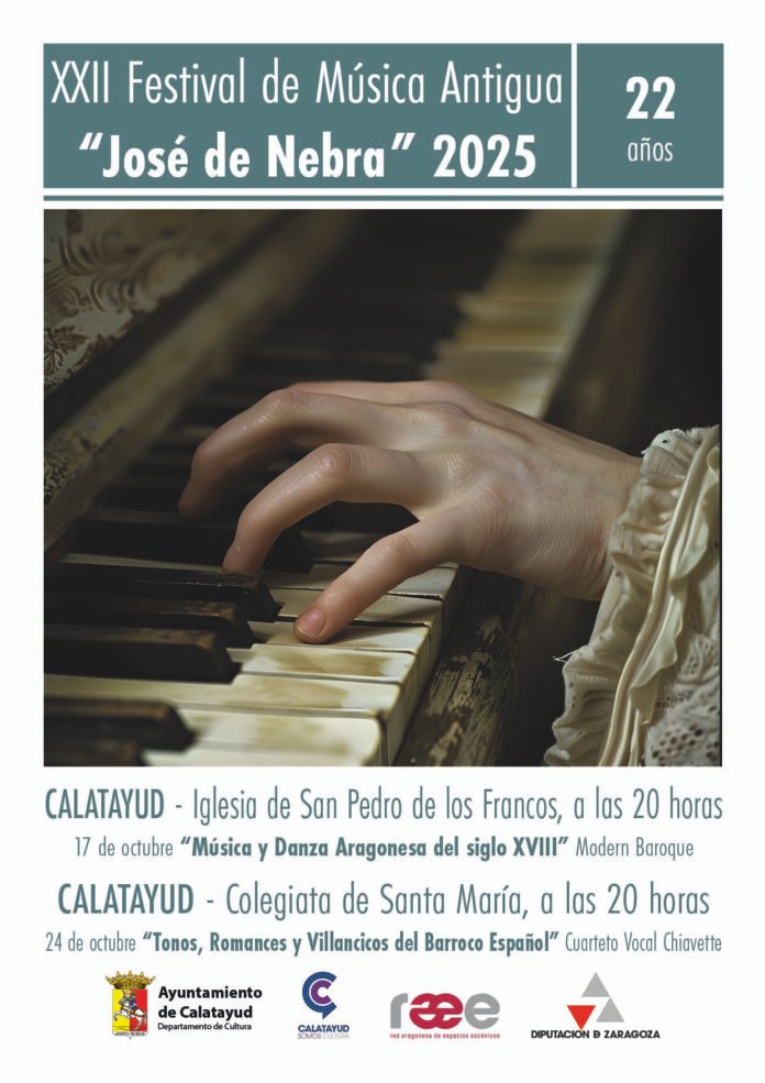 El próximo viernes 17 de octubre vuelve la cita que cada otoño regala conciertos de música antigua en espacios patrimoniales de Calatayud. El Festival de Música Antigua José de Nebra cumple 22 ediciones este año. En cada una de ellas ha recordado al compositor bilbilitano y ha promocionado un estilo musical sobre el que investigan y que interpretan grupos que deleitan al público bilbilitano.