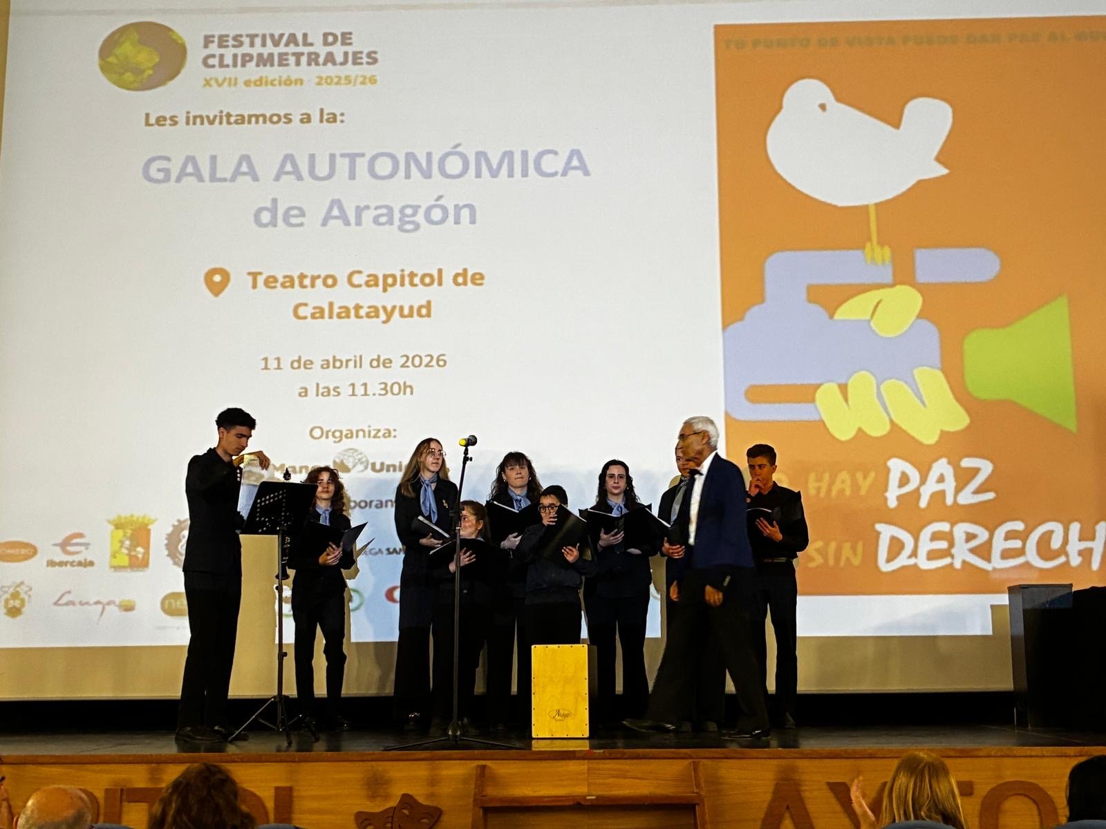 El Teatro Capitol de Calatayud se vistió de gala el pasado sábado 11 de abril de 2026 para acoger la final autonómica de la XVII edición del Festival de Clipmetrajes de Manos Unidas. En una jornada marcada por el talento joven y el compromiso social, el vídeo titulado “RESPETA”, realizado por el alumnado de 1º de ESO (clase A-B) del IES Rodanas de Épila, se alzó con el máximo galardón en la Categoría Escuelas Secundaria. Este reconocimiento otorga al centro el pase directo para representar a Aragón en la gran final nacional que se celebrará en Madrid durante el mes de mayo.
