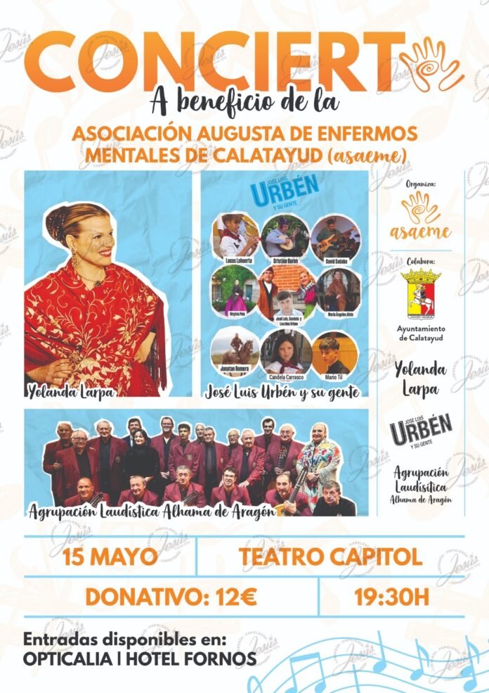 La cita tendrá lugar el próximo 15 de mayo a las 19:30 horas en el Teatro Capitol de Calatayud. El evento contará con un cartel de lujo que reúne a destacados exponentes del folklore y la música aragonesa. Entre los artistas confirmados se encuentran la bilbilitana Yolanda Larpa y el grupo José Luis Urbén y su gente, quienes aportarán su talento y sensibilidad a esta causa social. Asimismo, la Agrupación Laudística de Alhama de Aragón completará la velada con su tradicional sonido de pulso y púa.