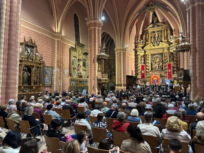 En la tarde de ayer, la iglesia de San Pedro de los Francos de Calatayud se vistió de gala para acoger un emotivo homenaje a las seis bandas de música de la Comarca. El acto, celebrado con motivo de la festividad de Santa Teresa, patrona de la Comarca de Calatayud, congregó a un numeroso público que llenó el templo de música y cerró la jornada con una ovación.