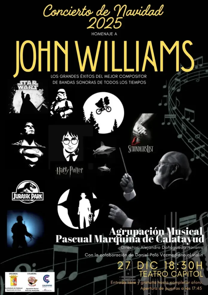 El espíritu navideño en Calatayud vibrará con las melodías épicas de uno de los compositores de bandas sonoras más icónicos de la historia del cine: John Williams. La Agrupación Musical Pascual Marquina de Calatayud cuenta ya las horas para su Concierto de Navidad 2025, un evento que promete transportar al público a las grandes aventuras de la pantalla grande.