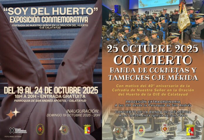 La Cofradía de Nuestro Señor en la Oración del Huerto de la Organización Juvenil Española de Calatayud se prepara para conmemorar su 40º Aniversario (1985-2025) con un calendario de actos especiales que culminarán con una Procesión Extraordinaria por las calles de la localidad. Estos eventos, que suponen un hito en la historia de la fe y la tradición bilbilitanas, tendrán lugar a finales de octubre.