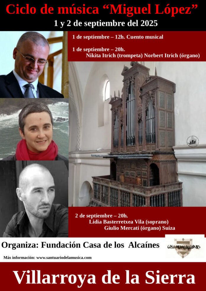 Hoy, 1 de septiembre, y mañana, martes 2, la Iglesia de San Pedro Apóstol en Villarroya de la Sierra, en la Comarca Comunidad de Calatayud es el escenario del Ciclo de Música «Miguel López». Organizado por la Fundación Casa de los Alcaínes, este evento promete dos días de música clásica y arte.