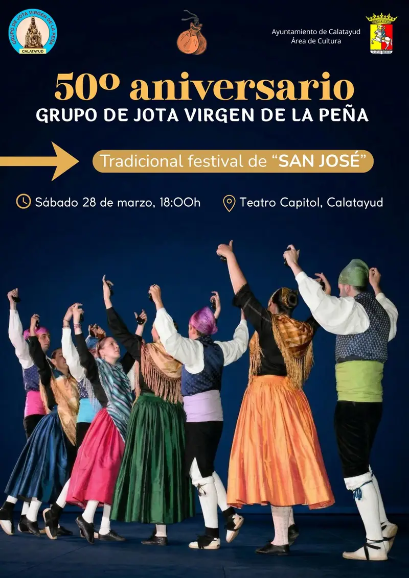 El Teatro Capitol de Calatayud se convertirá hoy sábado 28 de marzo en el epicentro del folclore aragonés con la celebración del tradicional Festival de San José. Esta edición no es una más en el calendario, ya que marca el 50 aniversario de la fundación del Grupo de Jotas Virgen de la Peña, una institución que ha dedicado cinco décadas a la salvaguardia y difusión de las raíces culturales de la región.