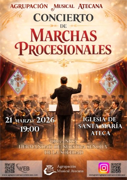 La localidad de Ateca se prepara para vivir una de las citas más señaladas en su calendario cultural y religioso previo a la Semana Santa. El próximo 21 de marzo , la Iglesia de Santa María será el escenario del Concierto de Marchas Procesionales, un evento que promete emocionar a los asistentes a través de la solemnidad y la belleza de este género musical tan arraigado en la tradición.