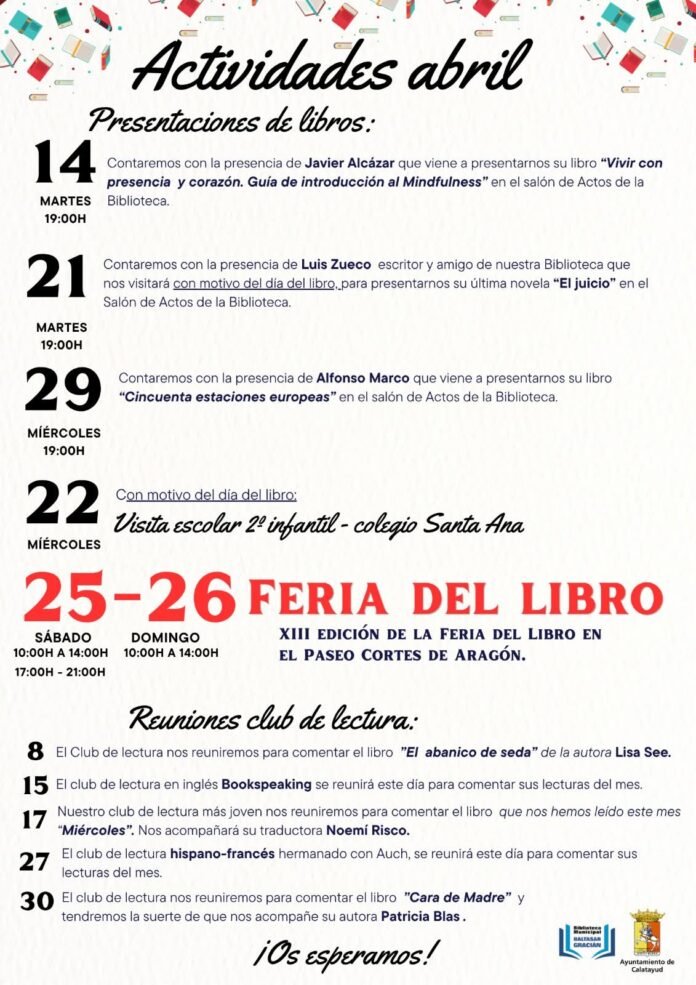 La primavera trae consigo una explosión de literatura a Calatayud con un programa de actividades para el mes de abril que promete convertir la biblioteca en el epicentro cultural de la ciudad. Bajo el lema «Actividades de abril», la agenda se despliega con una variada oferta que incluye presentaciones de autores de renombre, encuentros de clubes de lectura y visitas escolares, culminando en la gran celebración de las letras en las calles.