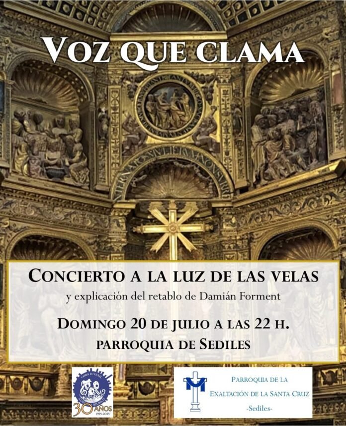 La localidad de Sediles, en la Comarca Comunidad de Calatayud, se viste mañana de gala para acoger un concierto a la luz de las velas. Titulado “Voz que clama”, tendrá lugar en la Parroquia de esta localidad a partir de las 22h. Los invitados especiales serán el Coro Augusta Bílbilis de Calatayud.
