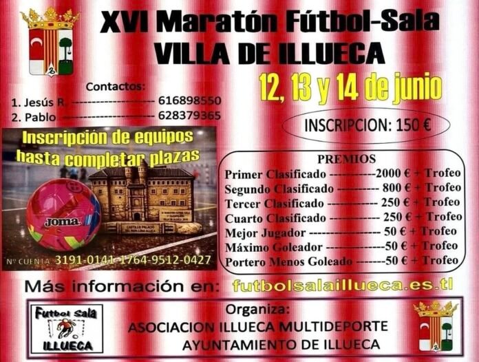 El Ayuntamiento de Illueca ha anunciado la puesta en marcha de la XVI Maratón de Fútbol Sala «Villa de Illueca», un evento que se ha consolidado como una de las citas deportivas más esperadas y especiales del calendario anual para los amantes del deporte base y la convivencia vecinal.