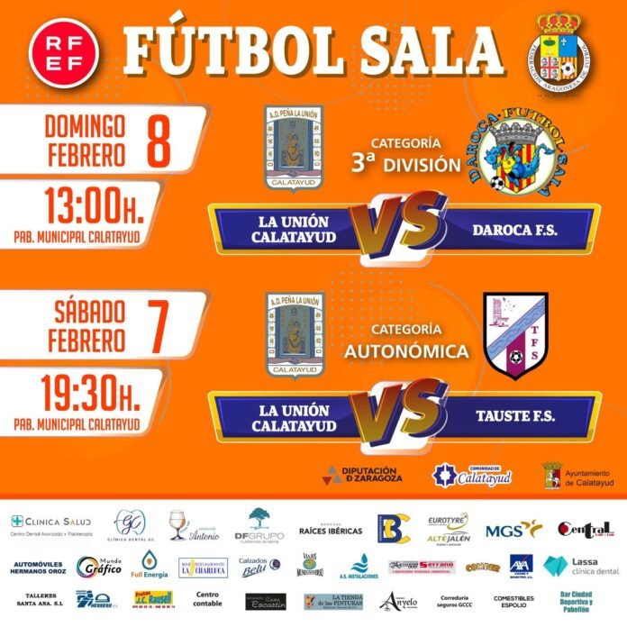 Nueva jornada para los equipos de fútbol sala de la Agrupación Deportiva Peña la Unión de Calatayud. El equipo de Tercera División recibirá al Daroca FS el domingo 8 de febrero a partir de las 13h en el Pabellón Polideportivo Municipal “Pablo Abián” de Calatayud.