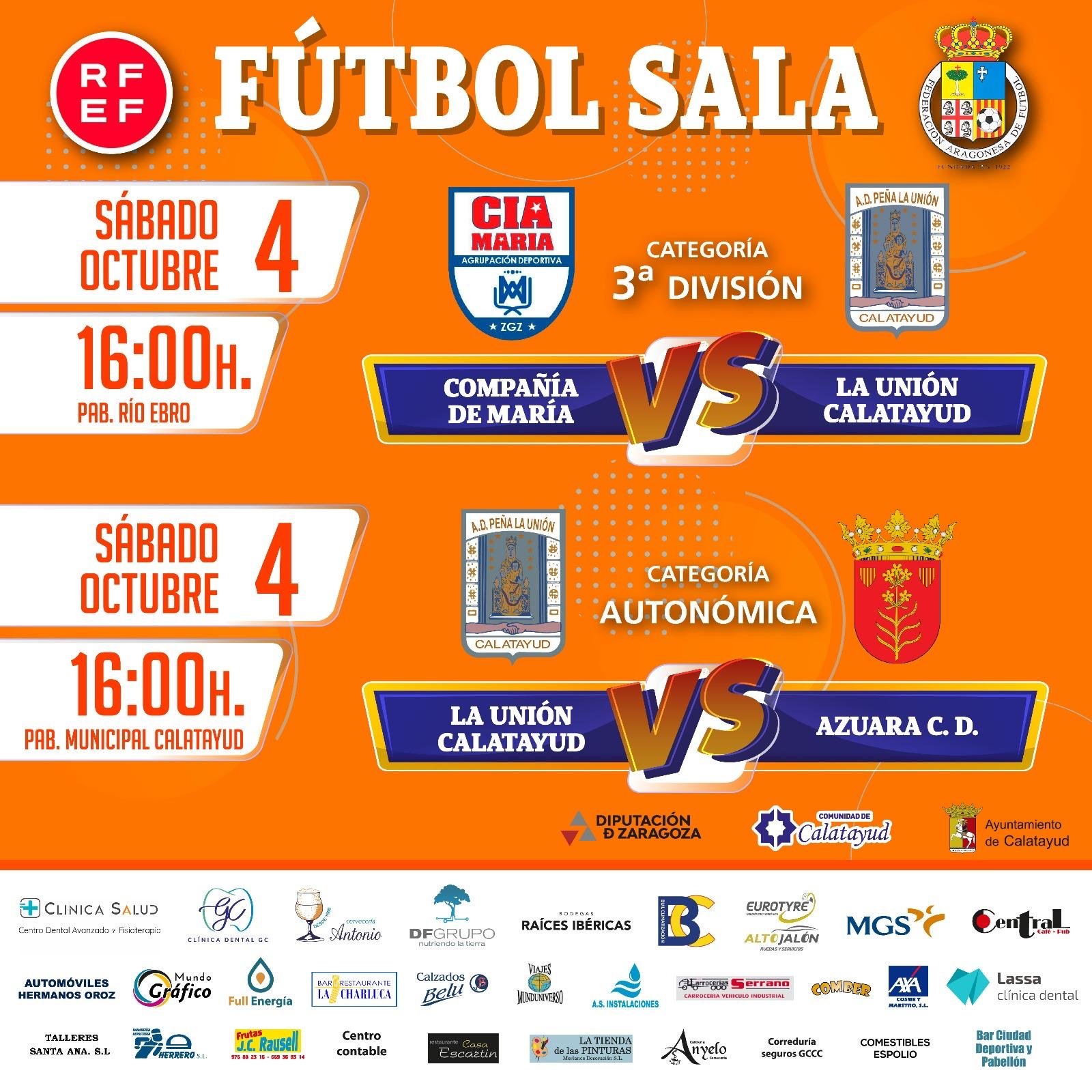 Nueva jornada para los equipos de fútbol sala de la Agrupación Deportiva Peña la Unión de Calatayud. El equipo de Tercera División viaja a la capital aragonesa para enfrentarse al Compañía de María a partir de las 16h.