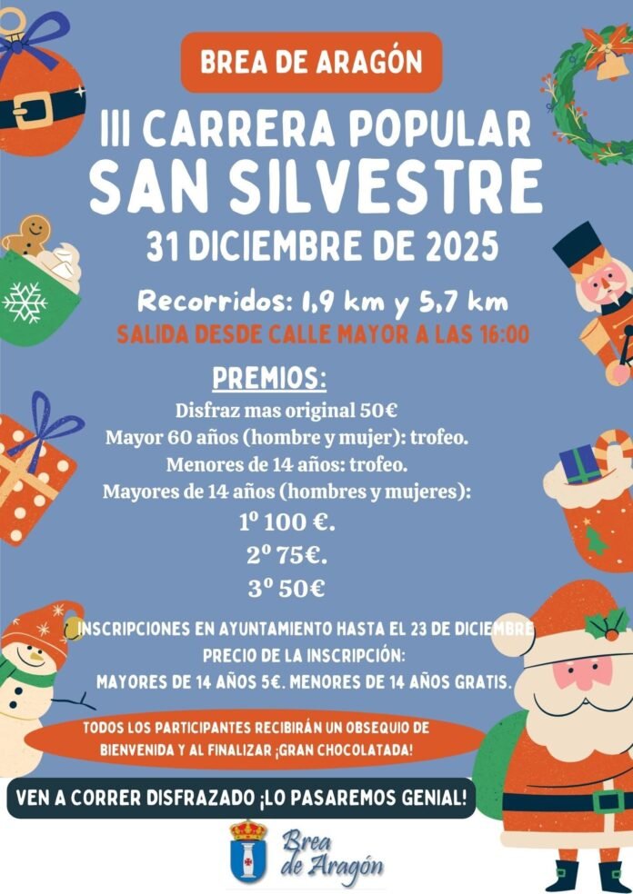 El Ayuntamiento de Brea de Aragón ha anunciado la organización de la III San Silvestre Breana, una carrera popular que se celebrará el próximo 31 de diciembre de 2025 para despedir el año de forma deportiva.