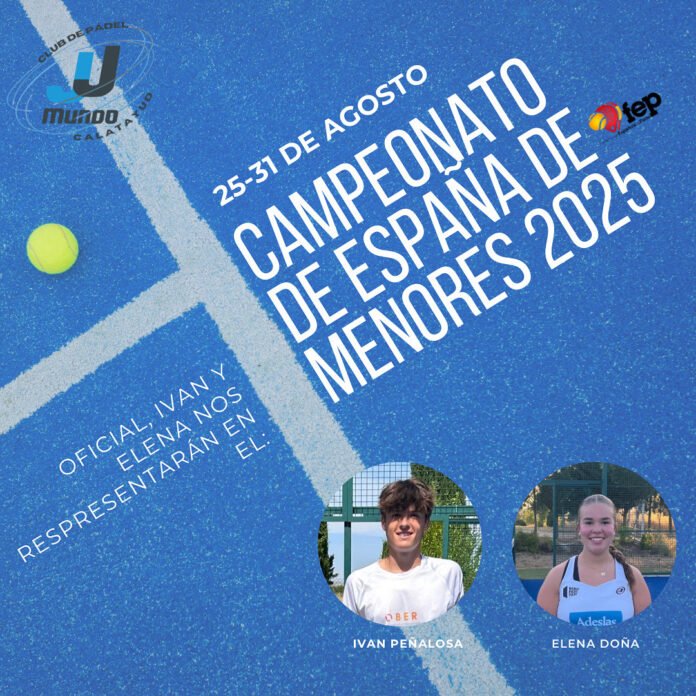 Calatayud contará con representación en el próximo Campeonato de España de Menores, que se disputará del 25 al 31 de agosto en el Club de Pádel Somontes, en Madrid.