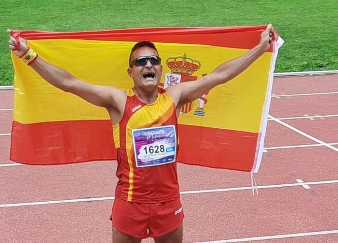 Este atleta volvía a pasear la bandera azul y blanca de la ciudad que ha hecho la suya, desde que llegó aquí por motivos laborales y con la que está comprometido en varias causas y proyectos deportivos como el de Calatayud Incluye, de la mano de la Asociación AMIBIL.