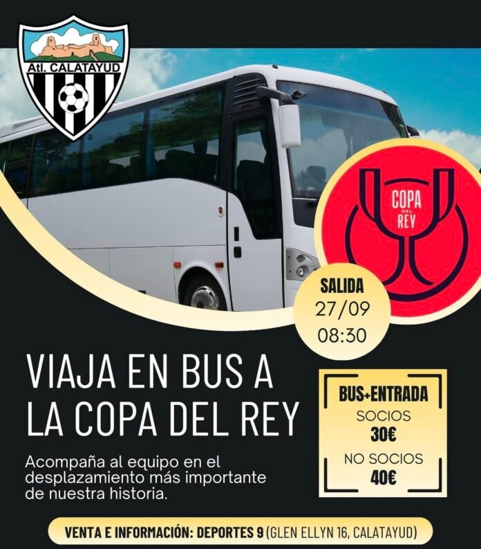 El Atlético Calatayud C.F. ha organizado un viaje en autobús para que sus aficionados puedan acompañar al equipo en un partido histórico. El club se enfrentará al Atlético Sant Just en el partido de ida de la fase previa de la Copa del Rey.