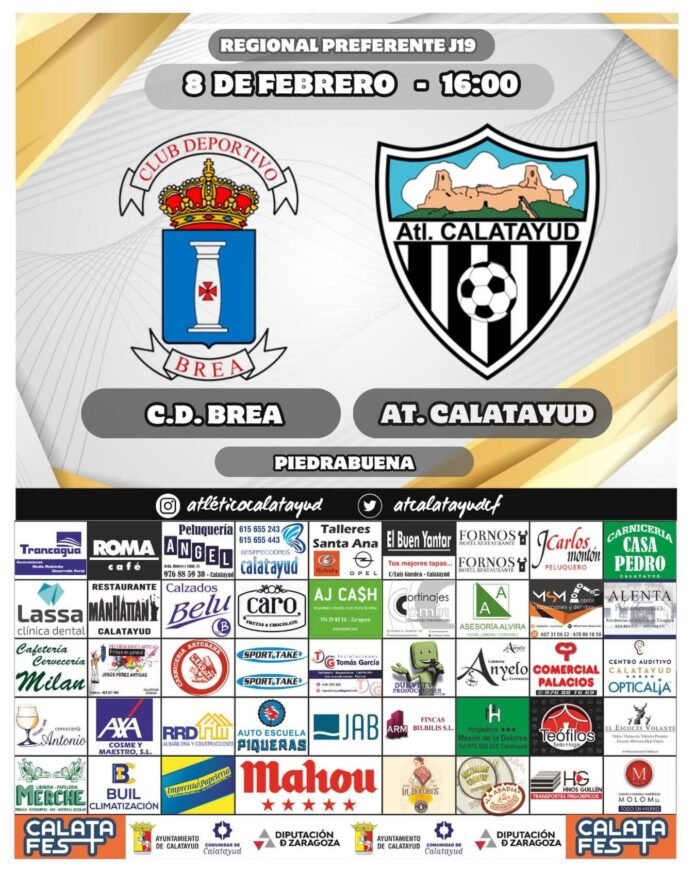 El Atlético Calatayud C.F. se prepara para uno de los encuentros más determinantes de la temporada en la Regional Preferente. Este domingo, 8 de febrero, el conjunto bilbilitano se desplazará hasta la localidad de Brea de Aragón para medirse al actual líder de la categoría, el C.D. Brea, en un duelo directo por la supremacía de la tabla.