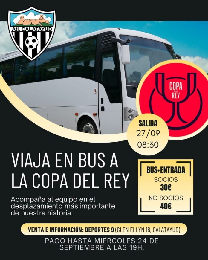 El Atlético Calatayud C.F. ha anunciado la organización de un viaje en autobús para que sus aficionados puedan acompañar al equipo en un partido histórico. El club se enfrentará al Atlético Sant Just en el partido de ida de la fase previa de la Copa del Rey.