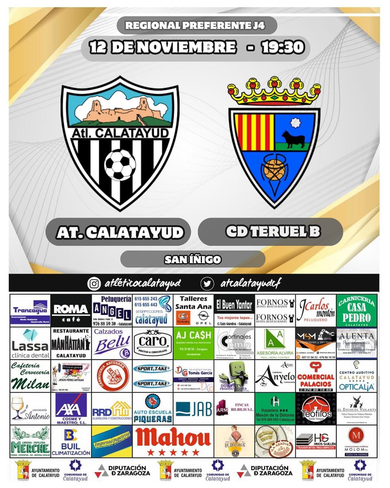 Esta misma tarde, el Municipal “San Iñigo” de la Ciudad Deportiva de Calatayud se viste de gala para una nueva jornada de liga correspondiente al grupo 2 de la Regional Preferente Aragonesa.